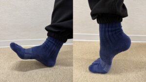 循環の効率を左右する意外なポイントが、「足関節(足首)」の硬さです。 特に、つま先をスネ側に反らす動き(背屈可動域)が狭い人は要注意です。足首が硬いと、ふくらはぎのポンプ作用が十分に発揮されず、血液が足先で滞りやすくなってしまいます。