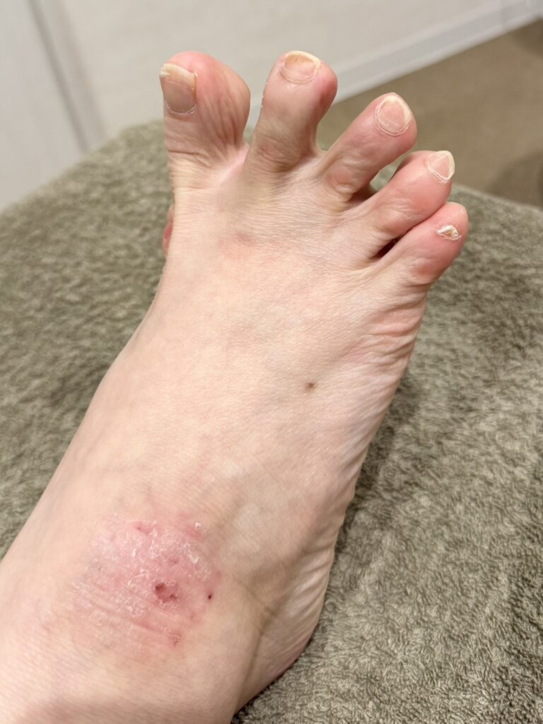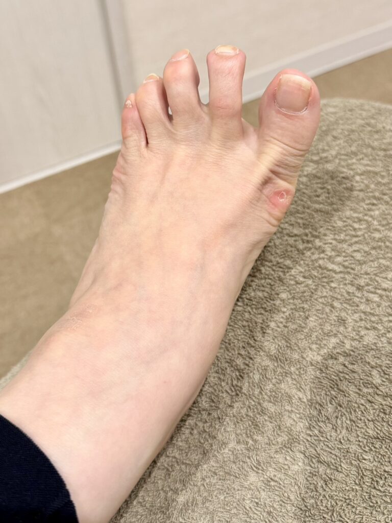 距骨調整とともにセルフケアとして足の指の曲げ伸ばし