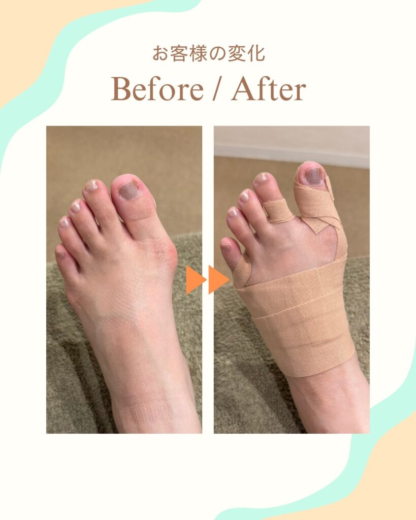 距骨調整で足の筋肉を動かしてテーピングでサポートしています